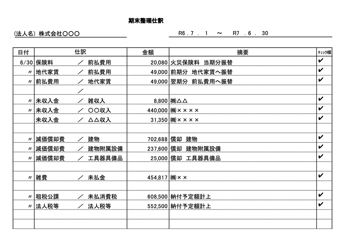 そのような混乱を防ぐためにも、期末に必要となる仕訳を一覧にまとめておくと安心です。